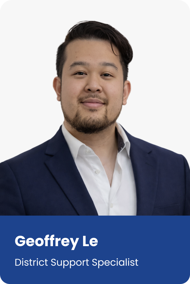 Geoffrey plays a key role in supporting the district and its agency owners, contributing to day-to-day operations and helping ensure agents have the resources and support they need.